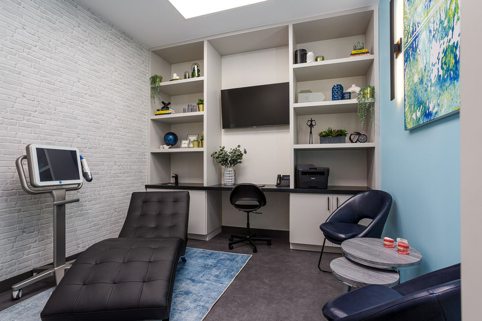Our studio was brought in to design a modern, vibrant, and inviting orthodontic clinic, bringing the energetic feel of Downtown Toronto to a suburban location. We transformed an open 2,500 sq. ft. industrial space into a lively, functional, and efficient clinic that appeals to both children and adults, with a strong focus on patient experience and operational flow. A bold yellow and blue color palette, contemporary lighting, concrete finishes, and custom material selections enhance the modern and playful identity of the space. We collaborated with a medical equipment specialist to optimize the layout for staff and patient comfort, creating a dynamic, accessible environment that combines interior design aesthetics with medical office efficiency.