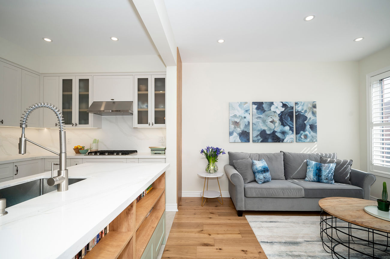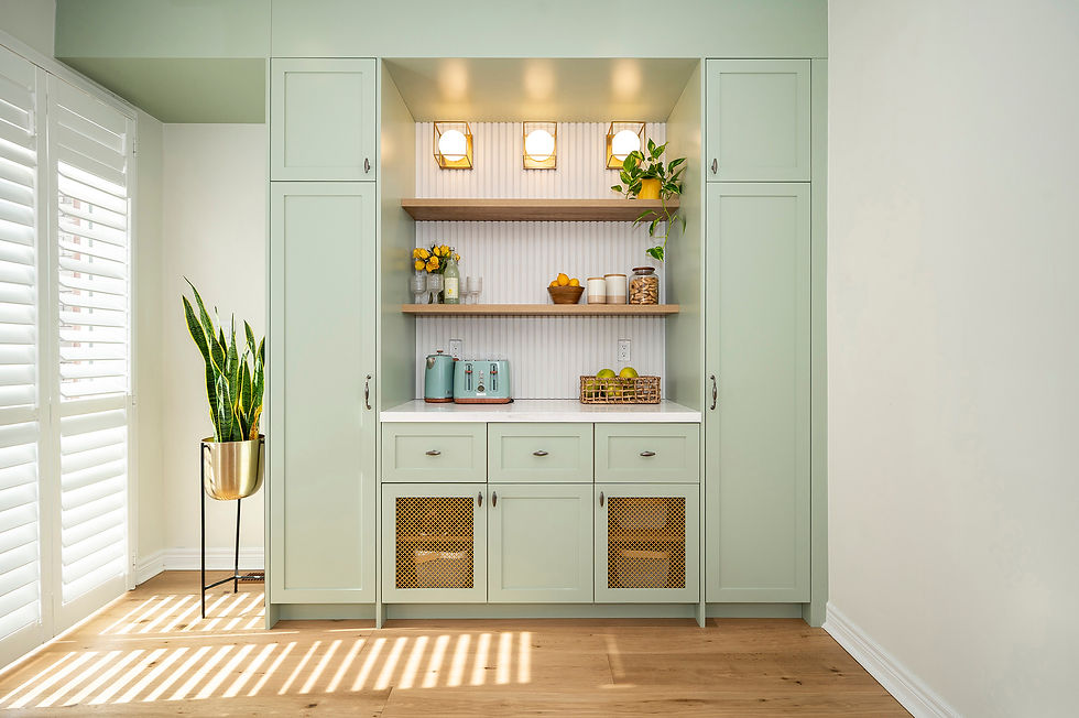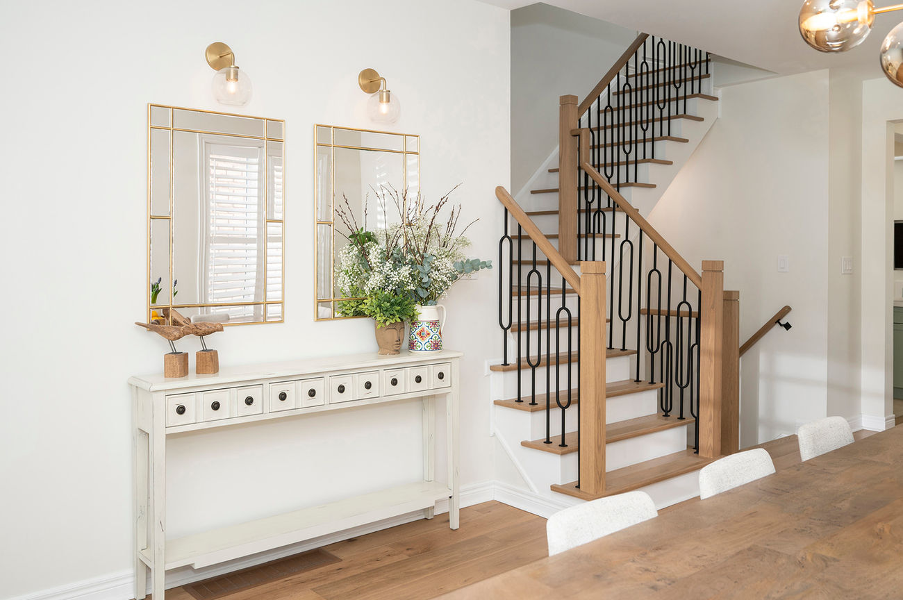 This thoughtfully designed home strikes the perfect balance between warmth and sophistication. Soft neutral tones, natural wood accents, and carefully curated details create a serene atmosphere throughout. From the elegant dining area to the calming mint-hued kitchen, every corner of the home is styled with intention. Sleek gold fixtures, custom cabinetry, and playful patterns add personality without overwhelming the space. A fresh, inviting design that feels both lived-in and elevated—designed to inspire comfort and beauty in everyday living.